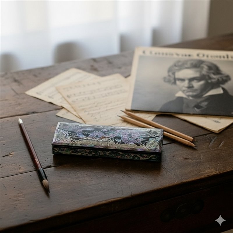 Handmade Korean Pencil Case – Lacquered Dragon Artwork in Real MOP